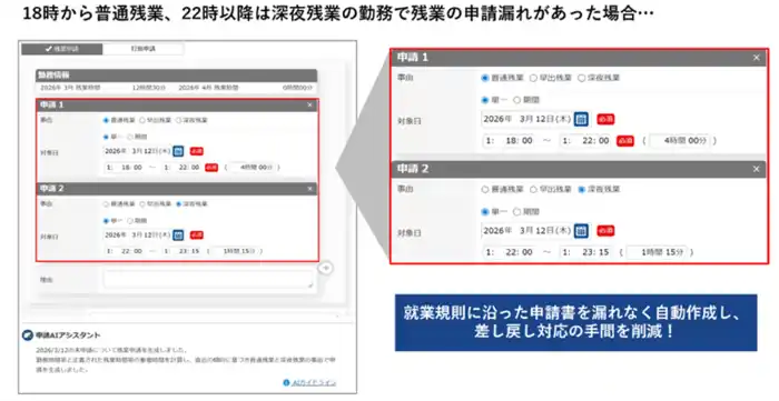 1.就業規則に合わせて申請漏れを自動抽出できるため、申請漏れがなくなる |