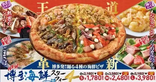 | 「えびマヨベーコン」のピザクック歴代人気シーフードピザ2種が加わり完成する『博多海鮮スターフォー』 | |||
