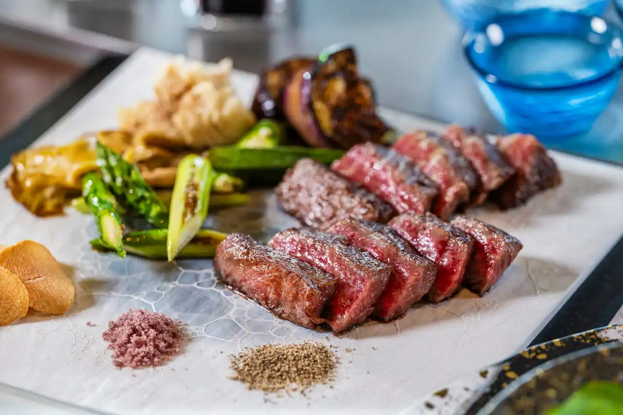 ダイナミックに素材を焼き上げるパフォーマンスが魅力の鉄板焼レストランでは、母の日の特別なひとときを演出するランチコースをご用意しております。前菜の帆立貝のマリネはお花を散りばめたフラワーアレンジメントを思わせる美しい盛り付けで、伊勢海老にはアンチエイジングや美容効果が期待されるアボカドソースを合わせました。メインには"A5ランク特選和牛"をフィレとサーロインの食べ比べでご提供。デザートにはエディブルフラワーをあしらったフルーツゼリーやラズベリーマカロンを添え、五感で楽しむ美しさと味わいをお楽しみいただけます。 |