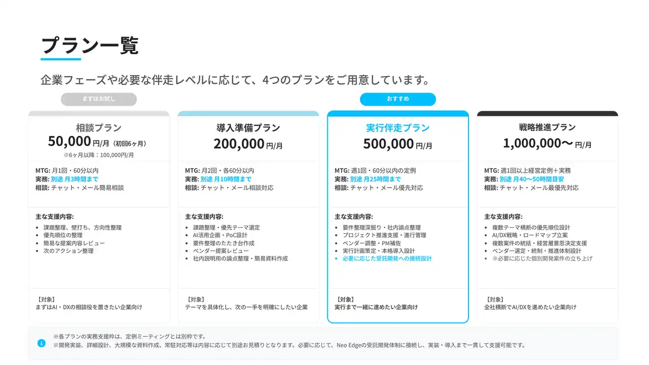 | 株式会社Neo Edge、社内にIT部門がない中小企業に特化した伴走型DX支援サービス「Neo Edge Consulting」の基本プランを提供開始 |