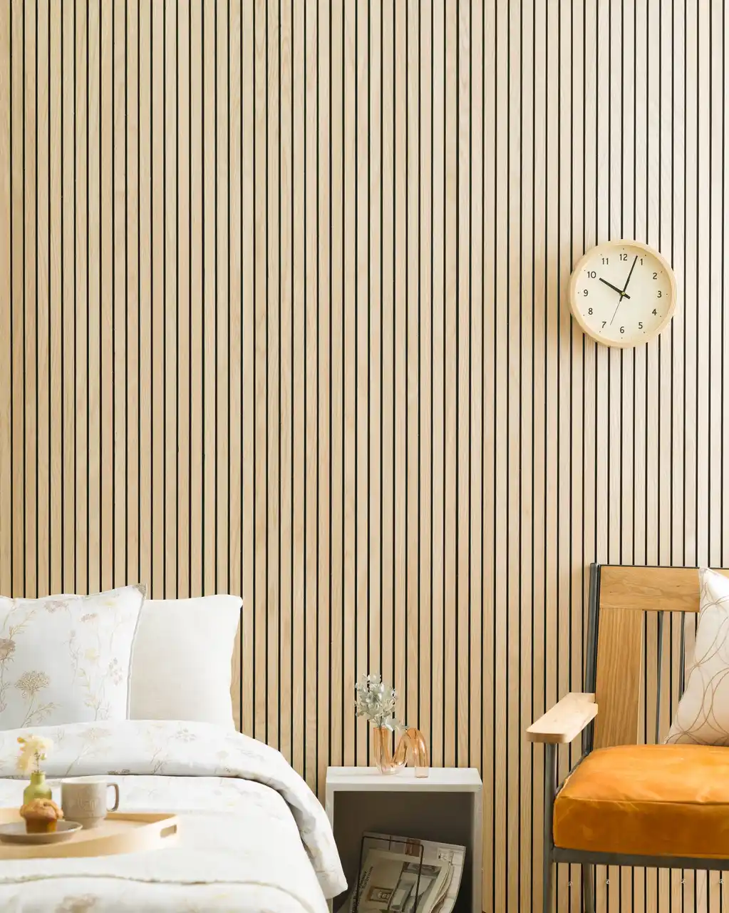 | スリットの表面には薄くスライスした天然木が貼り付けられており、高級感のある印象を与えます。素材はホワイトオークとウォールナットの2種類。本物の天然木ならではの上質な質感が、SNSでのルームツアーやDIY投稿で反響を呼びました。 | |||||||||