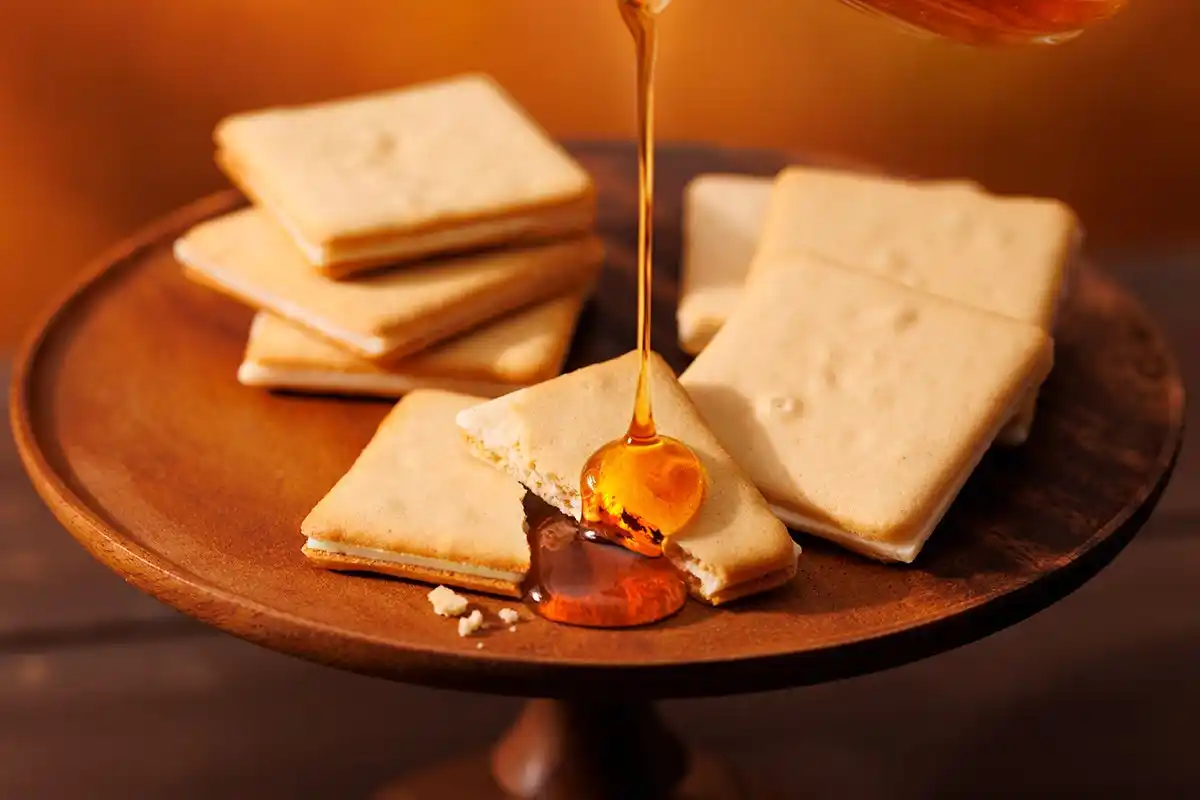 メープルシュガーを生地に練りこみ、サクサクのクッキーでバター風味のチョコ※をサンド。JR東日本おみやげグランプリ2023にて総合グランプリに輝いた人気No.1商品です。 |