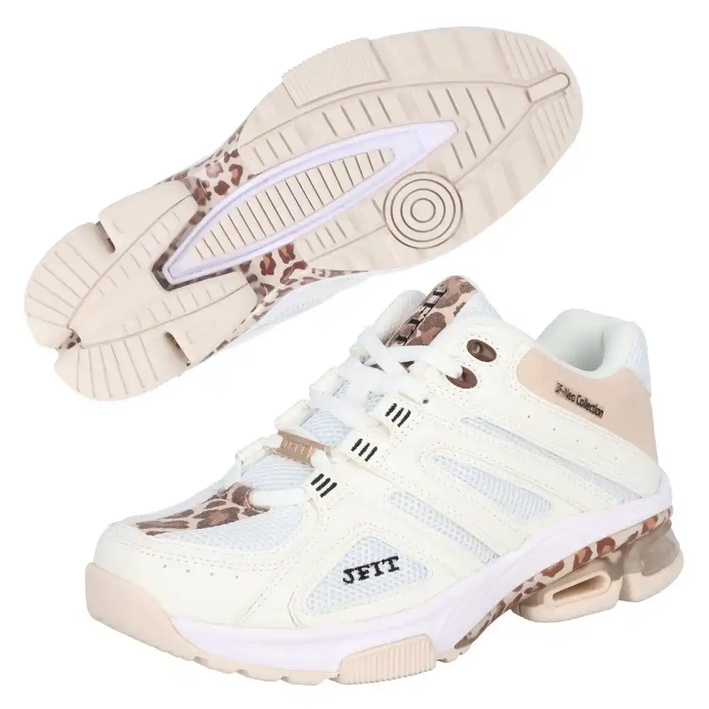 『JF-Neo』は、フィットネス特有の横移動やジャンプ動作に対応するため、捻じれを抑えるTPUプレートを搭載し、安定性を確保。さらに、踵部には衝撃吸収材とTPUパーツを組み合わせ、着地時の負担を軽減しながらスムーズな動きを促します。エアロビクス、ハイインパクト、ステップなど幅広いプログラムに対応し、快適なパフォーマンスをサポートします。 |