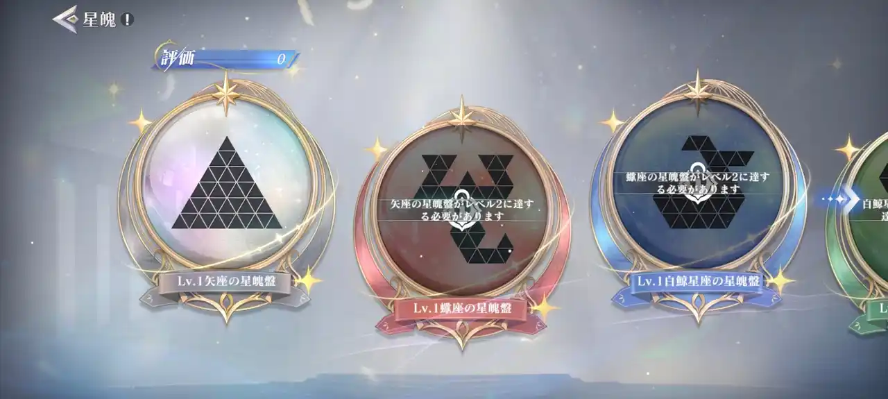 獲得された星魄は開放された星魄盤に埋め込めます。ステータスの向上効果は、星魄盤ごとに異なります。 |