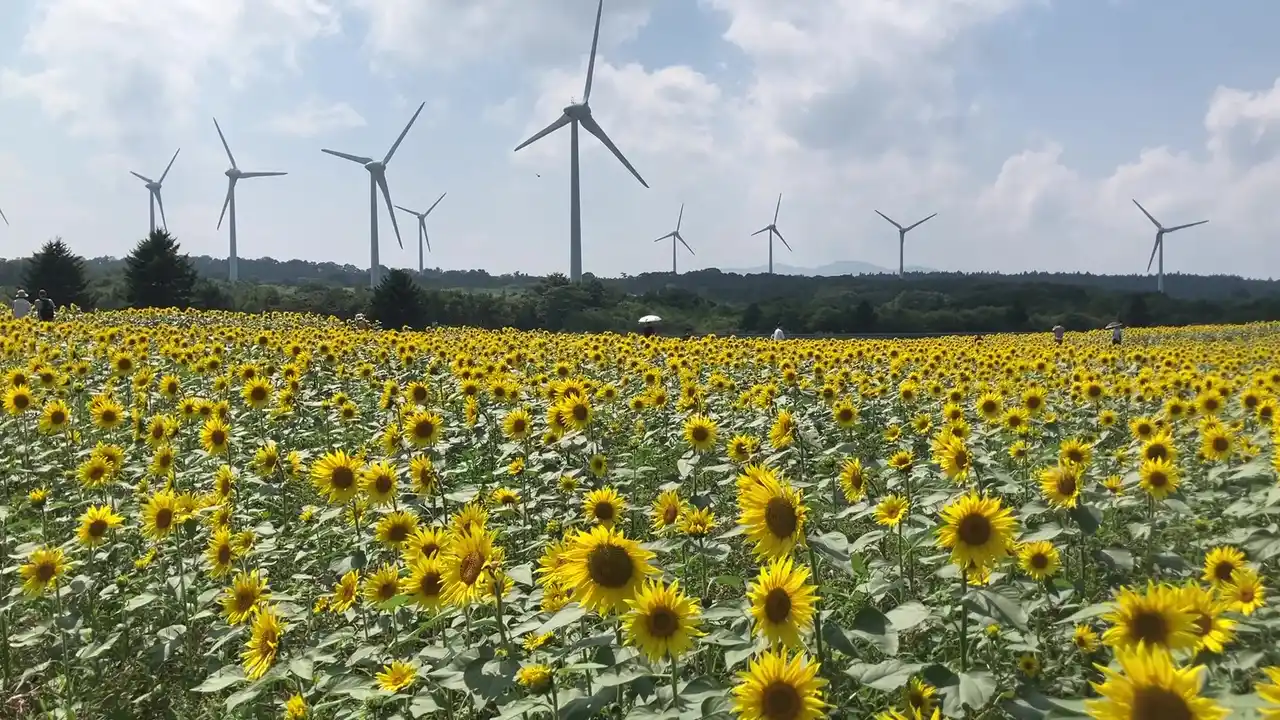 標高約1,000mの高原に約20万本のひまわりが咲き誇る、夏の大 人気観光スポットです。巨大な風車と黄色い絨毯のようなひまわり、猪苗代湖のパノラマ絶景が同時に楽しめます。 |