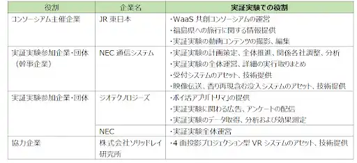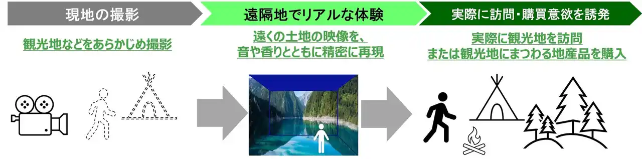 ○東日本旅客鉄道株式会社(代表取締役社長:喜㔟 陽一、以下「JR東日本」)、日本電気通信システム株式会社(代表取締役 執行役員社長:火物 丈裕、以下「NEC通信システム」)、ジオテクノロジーズ株式会社(代表取締役社長:八剱 洋一郎、以下「ジオテクノロジーズ」)、日本電気株式会社(取締役 代表執行役社長 兼 CEO:森田 隆之、以下「NEC」)は、現地で感じられる感覚を遠隔地で体感できる新しいバーチャル技術(以下、「没入システム」)による遠隔観光体験の実証実験を行います。 |
