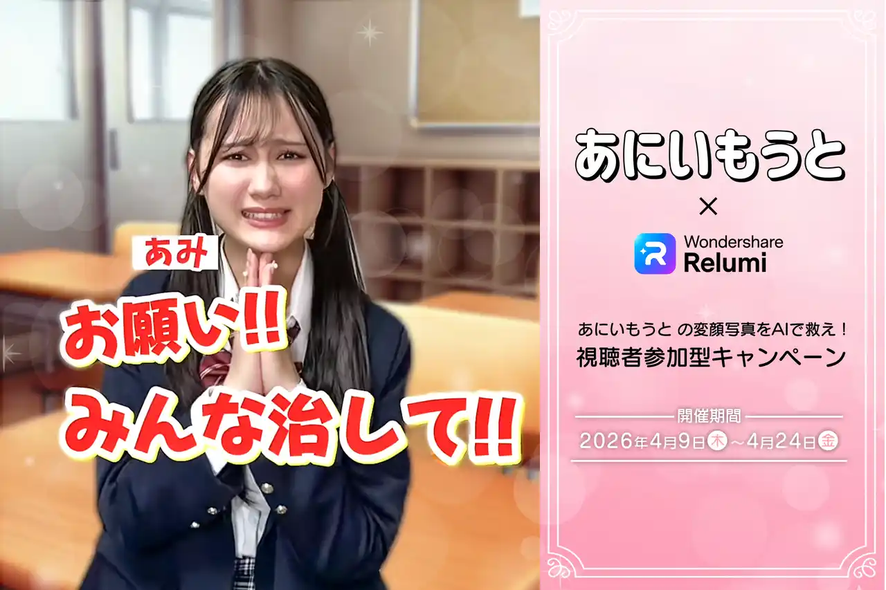 AI写真リテイクアプリ「Relumi」を提供する株式会社ワンダーシェアーソフトウェア(東京都港区、代表:呉太兵)は、人気クリエイター「あにいもうと」とコラボした「あにいもうと」の変顔写真をAIで救え!視聴者プレゼントキャンペーンをYouTube・TikTok・Instagramで開始しました。 |