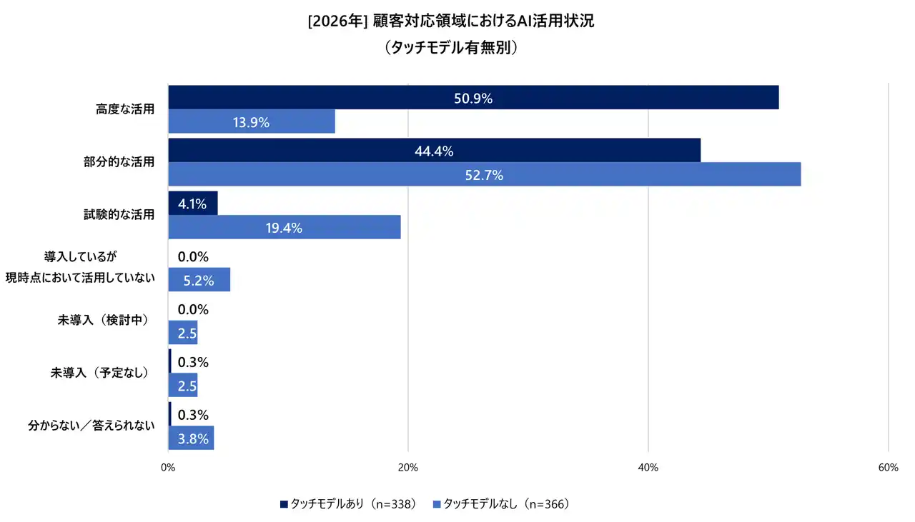 図5:[2026年] 顧客対応領域におけるAI活用状況(タッチモデル有無別) |