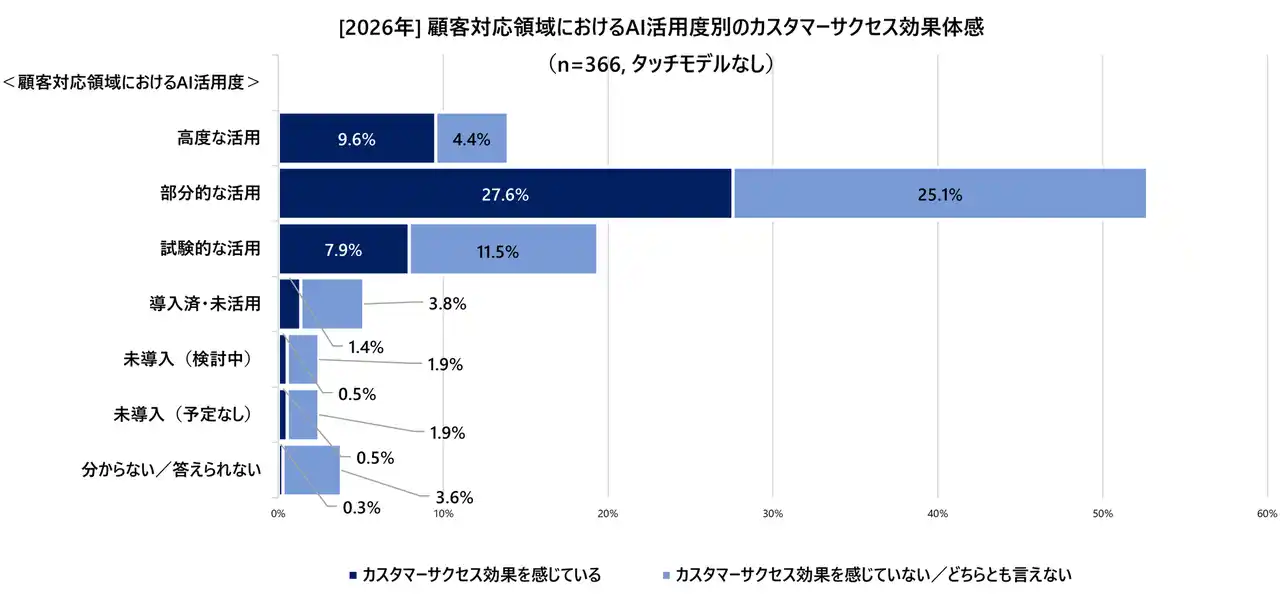 [2026年] 顧客対応領域におけるAI活用度別のカスタマーサクセス効果体感(n=366, タッチモデルなし) |