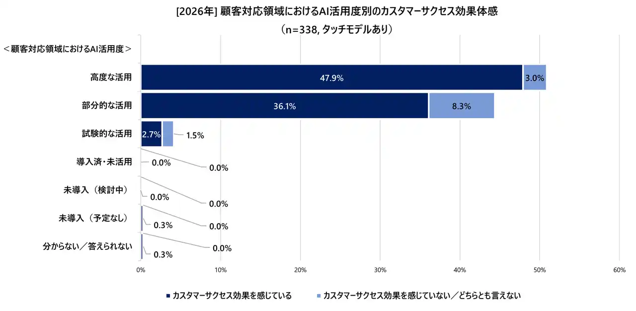 図6:[2026年] 顧客対応領域におけるAI活用度別のカスタマーサクセス効果体感(n=338, タッチモデルあり) |