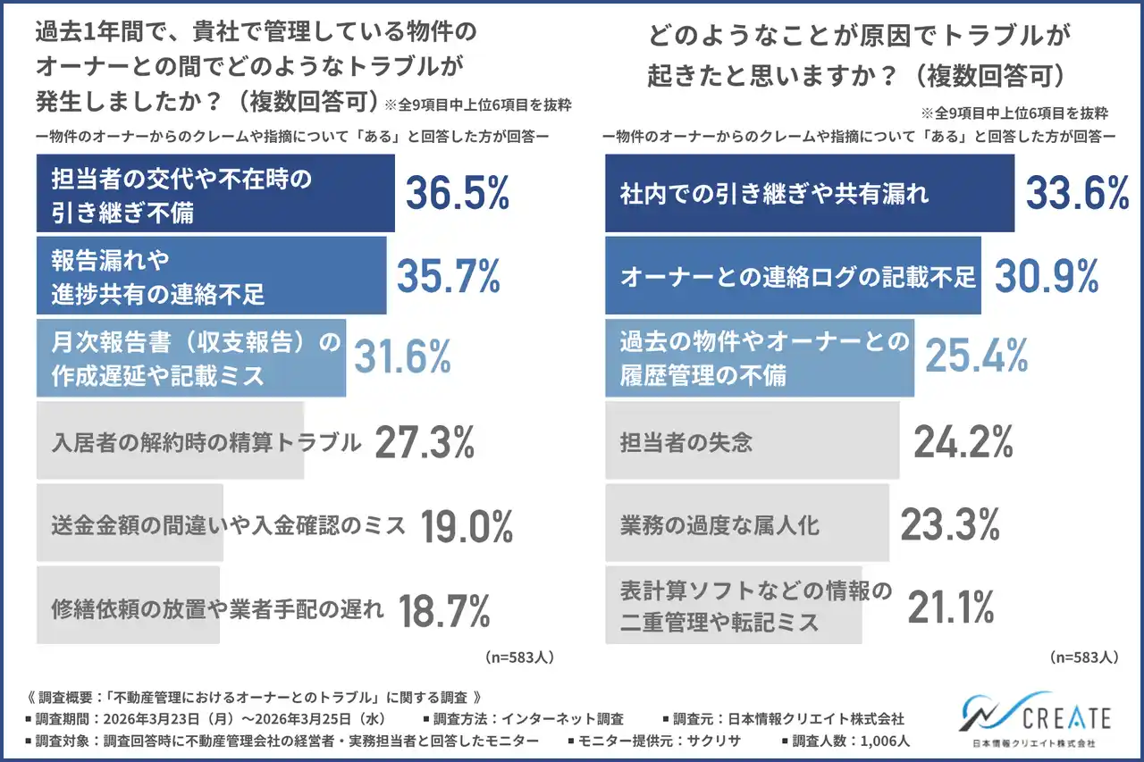 過去1年間で約6割が「オーナーからのクレームを受けた」と回答!トラブル第1位は「引き継ぎ不備」 |