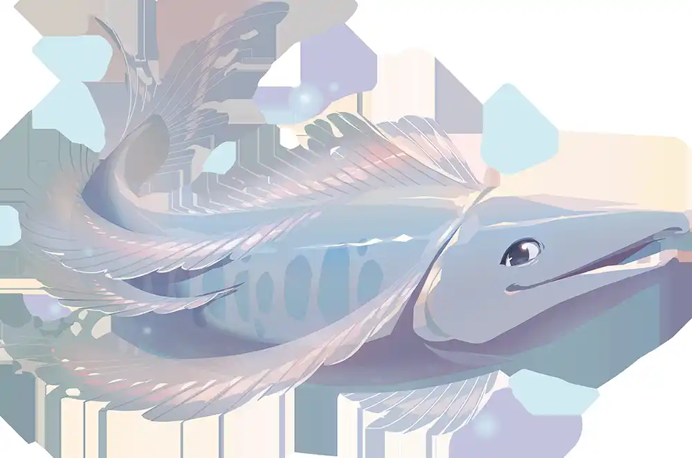 旅の途中で出会うサカナの神霊。何に囚われているのか自分でも分からず、悲しみと自責の念に沈んでいる。 |