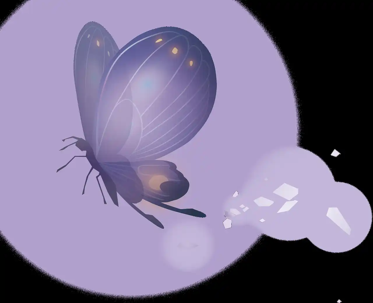 旅の途中で出会う蝶の神霊。翅は、セミの羽よりもさらに薄く、今にも消えてしまいそうな儚さを持つ。 |