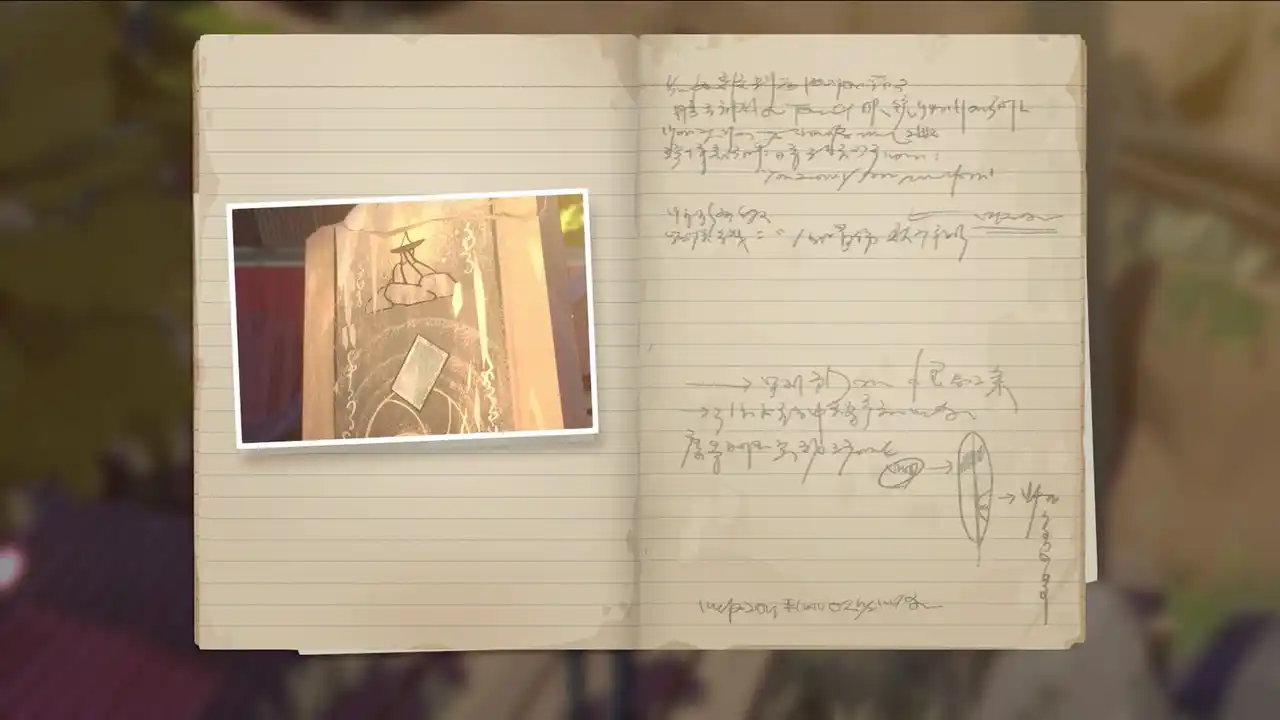 ボロボロの表紙に、不思議な文字が書かれた古いノート。撮影した写真や、神霊との交流で手に入る情報を書き込むことで、真実が徐々に浮かび上がってきます。 |