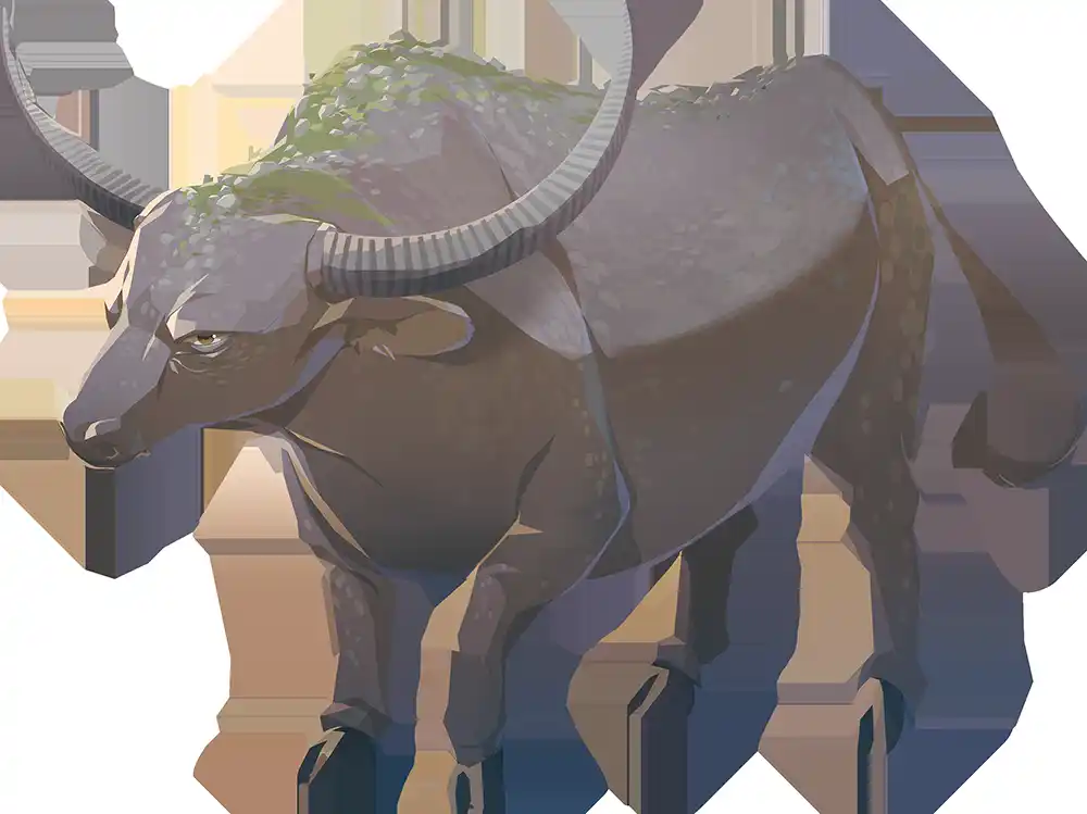 一本の角は途中で折れ、体のあちこちには傷跡が |