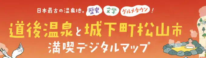 「道後温泉と城下町松山市満喫デジタルマップ」では、道後温泉周辺から松山城を中心とした城下町エリアまでの観光・立ち寄りスポットを一つの地図に集約。紙の地図では伝えにくい情報にもアクセスしやすく、初めて松山を訪れる方でも迷わずに利用できるイラストマップとなっています。 |