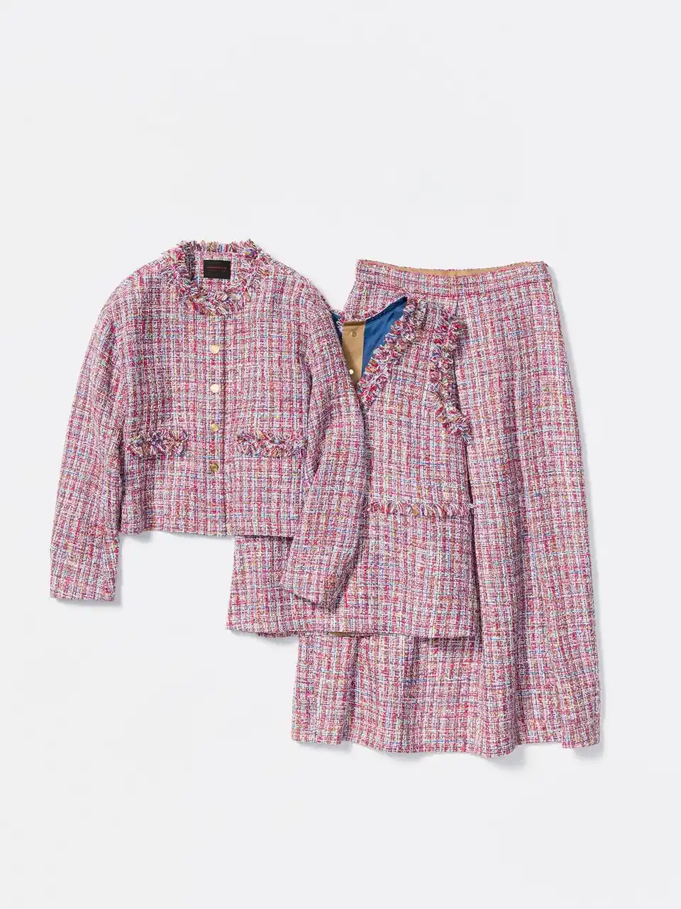 | フランスの老舗〈JULES TOURNIER(ジュール・トゥルニエ)〉社が織り上げた生地を使用した特別感のあるアイテム。鮮やかな色彩と繊細なフリンジが、装いに華やぎとエレガンスを添えます。 | |||