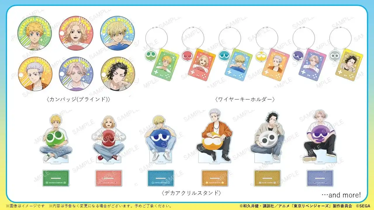 TVアニメ『東京リベンジャーズ』と「ぷよぷよ」のコラボが決定しました。2026年5月15日(金)から、新宿マルイアネックス6Fの「THEキャラSHOP」で、「カンバッジ」や「デカアクリルスタンド」などのコラボグッズを販売予定です。 |