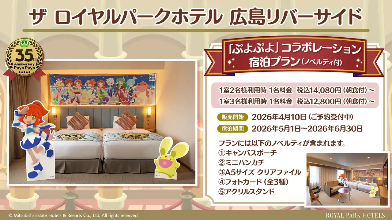 「2026ひろしまフラワーフェスティバル」へのブース出展をはじめ、「ザ ロイヤルパークホテル広島リバーサイド」とのコラボルーム、「呉海自カレー」をはじめとするコラボ商品の展開など多彩な取り組みを予定しています。「ぷよぷよ」とともに、“ばよえ~ん”な魅力を広島でお楽しみください。 |