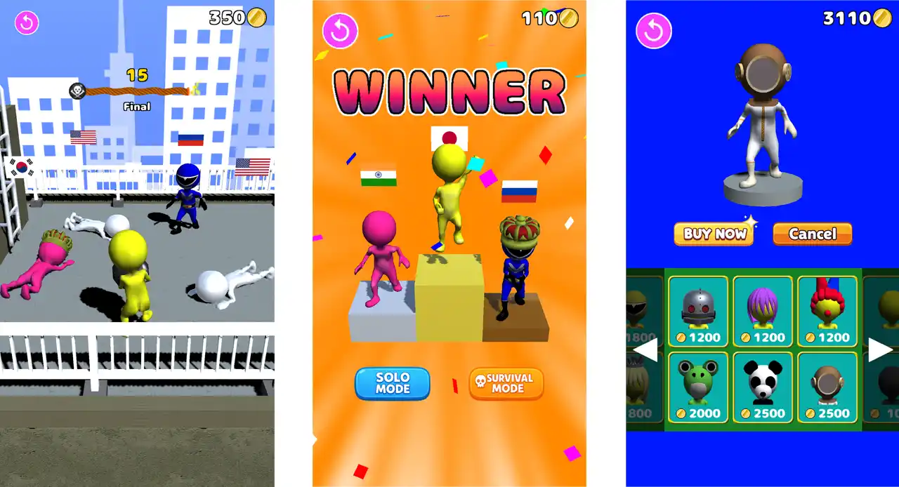 | シングルモードもサバイバルモードも勝利すればコインを得られ、貯めていくと着せ替えグッズが購入できます。 | |||