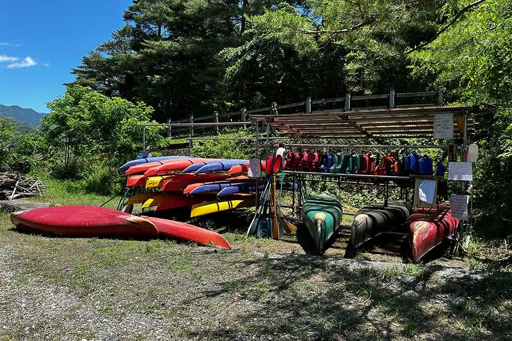 SATOMIYAの利用者限定で、カヌーとカヤックの無料レンタルを行っています。レンタルで利用できるのはカナディアンカヌー(耐荷重240kg)4艇、1人用カヤック12艇、オール、パドル、ライフジャケットです。カナディアンカヌーで仲間と同乗できるほか、一人ずつカヤックに乗って複数艇で湖上に出ることもできます。 カヌー・カヤックの乗船に必要なものを一通りレンタルできるので、キャンプついでに手軽に利用できます。 カヌー・カヤックのレンタルはセルフサービスです。