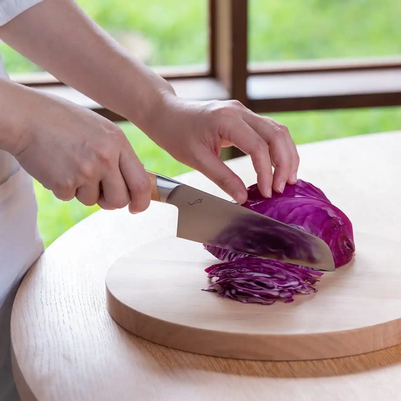 | 無駄のない、丁寧な暮らしに寄り添う包丁「kasane(かさね)」。女性の手にもなじむ軽やかさと扱いやすさを追求し、時間使っても疲れにくく、毎日の料理が心地よくはかどります。希少な山桜を用いたハンドルは、手にやさしいだけでなく、キッチンのインテリアに映える美しい存在感を放ちます。 | |||||||||||||||