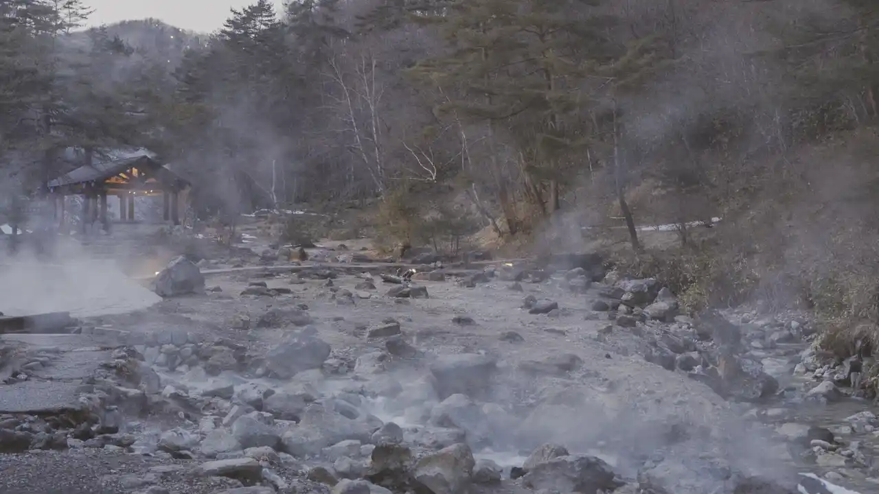 草津温泉・西の河原公園で撮影された幻想的なシーン |