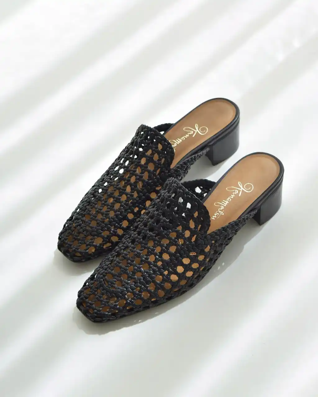 ローファー風のデザインで編み込んだミュールタイプ。ラフに履けるのに、きちんと見えるバランスの良さもポイントです。パンプス以上サンダル以下なので長いスパンで使えるのも嬉しい。デイリーに取り入れやすく、足元に今っぽさをプラスしてくれます。 |