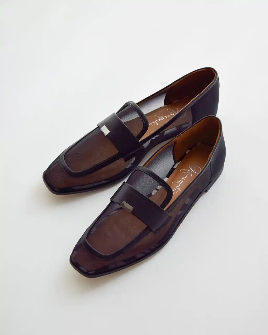 シアー素材を使用しモードな雰囲気に仕上げたスクエアトウローファー。今っぽいバランスで履け、通勤からデイリーまで幅広く使える万能さもポイント。チャレンジしやすいローファーだからこそ、今年らしい透け感がおすすめな一足。 |
