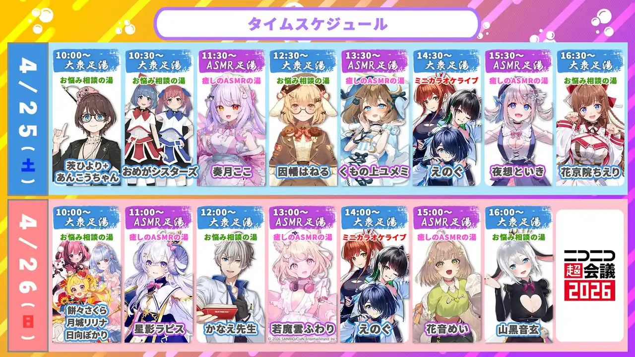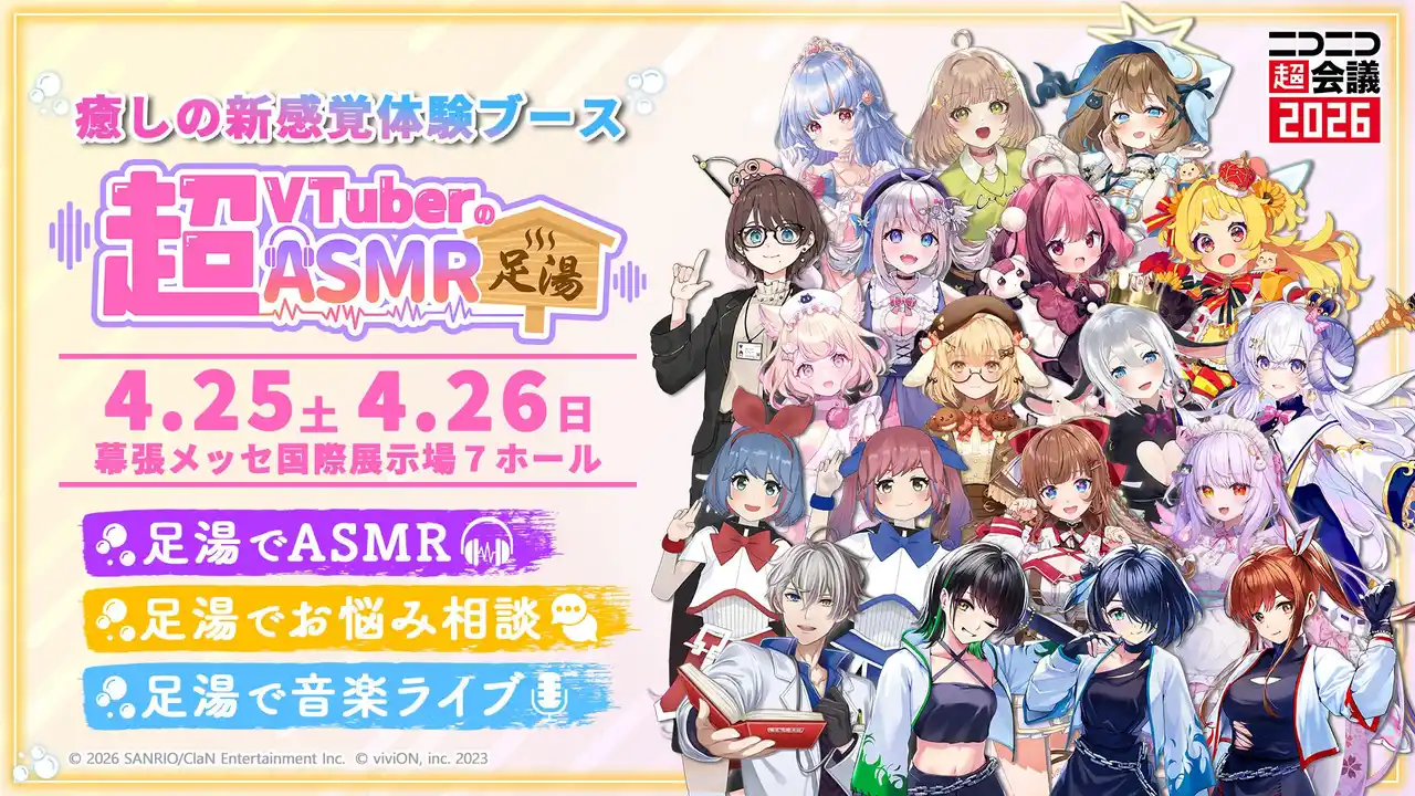 株式会社ドワンゴは、2026年4月25日(土)・26日(日)に幕張メッセで開催する「ニコニコ超会議2026」において、「VTuber」「ASMR」「足湯」を掛け合わせた体験型ブース「超VTuberのASMR足湯」を実施することをお知らせします。 |