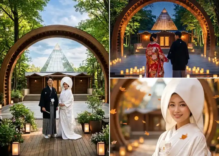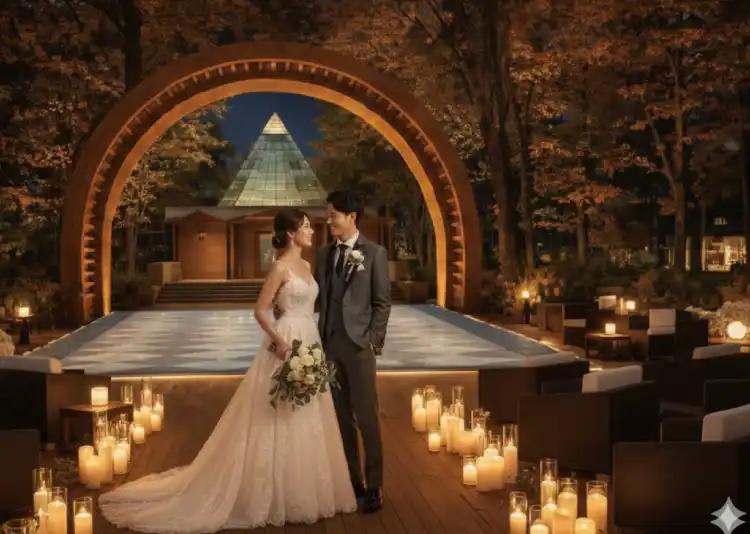 やわらかな灯りと石畳のアプローチが、厳かでありながら温もりある和婚を演出。 伝統の美しさと自然のやさしさが重なり、おふたりらしい一日を深く心に残るかたちで創り上げます。 |