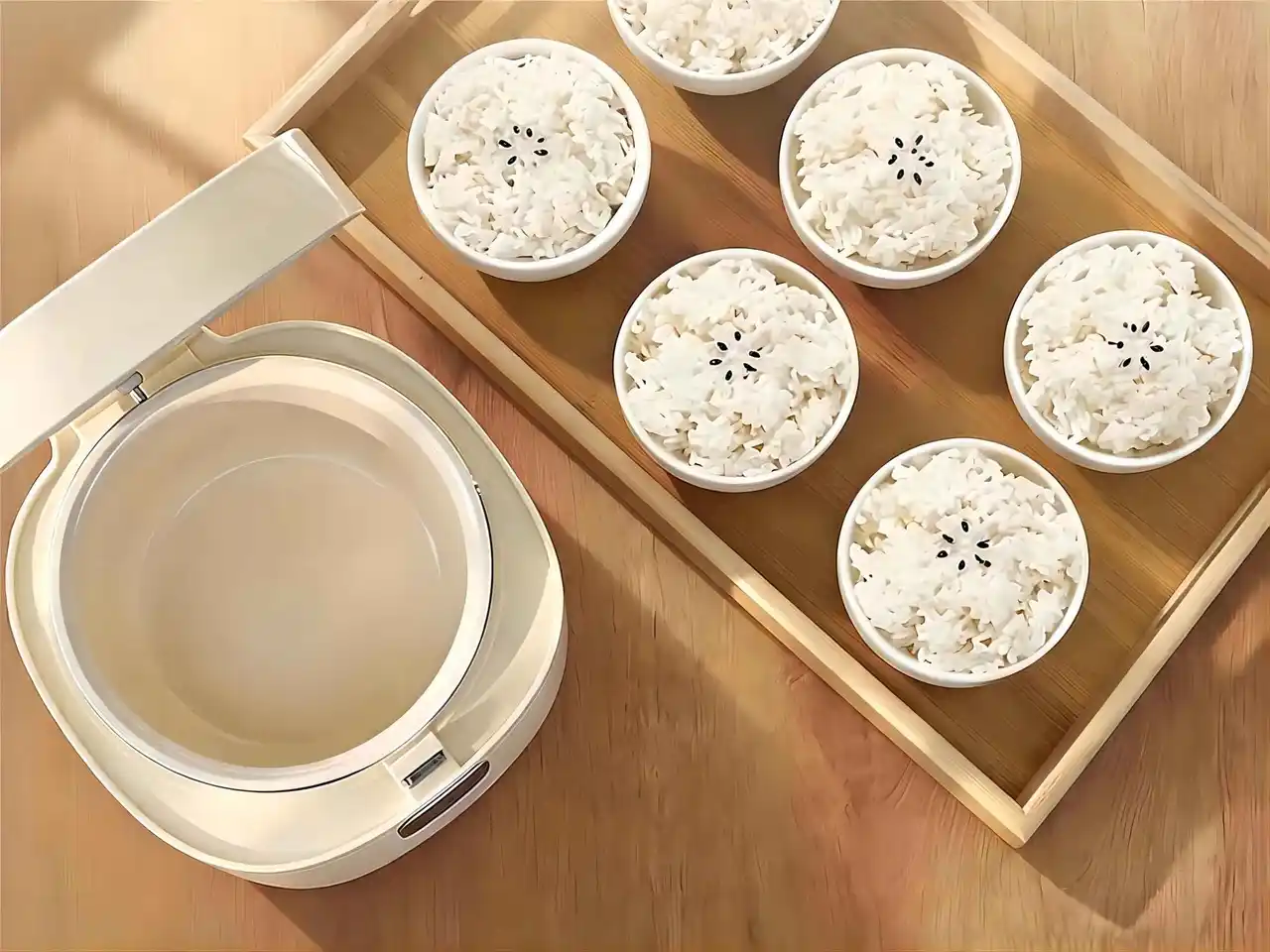 ◎3合炊きのジャストサイズ: 場所を取らないコンパクト設計で、キッチンを有効活用。 |