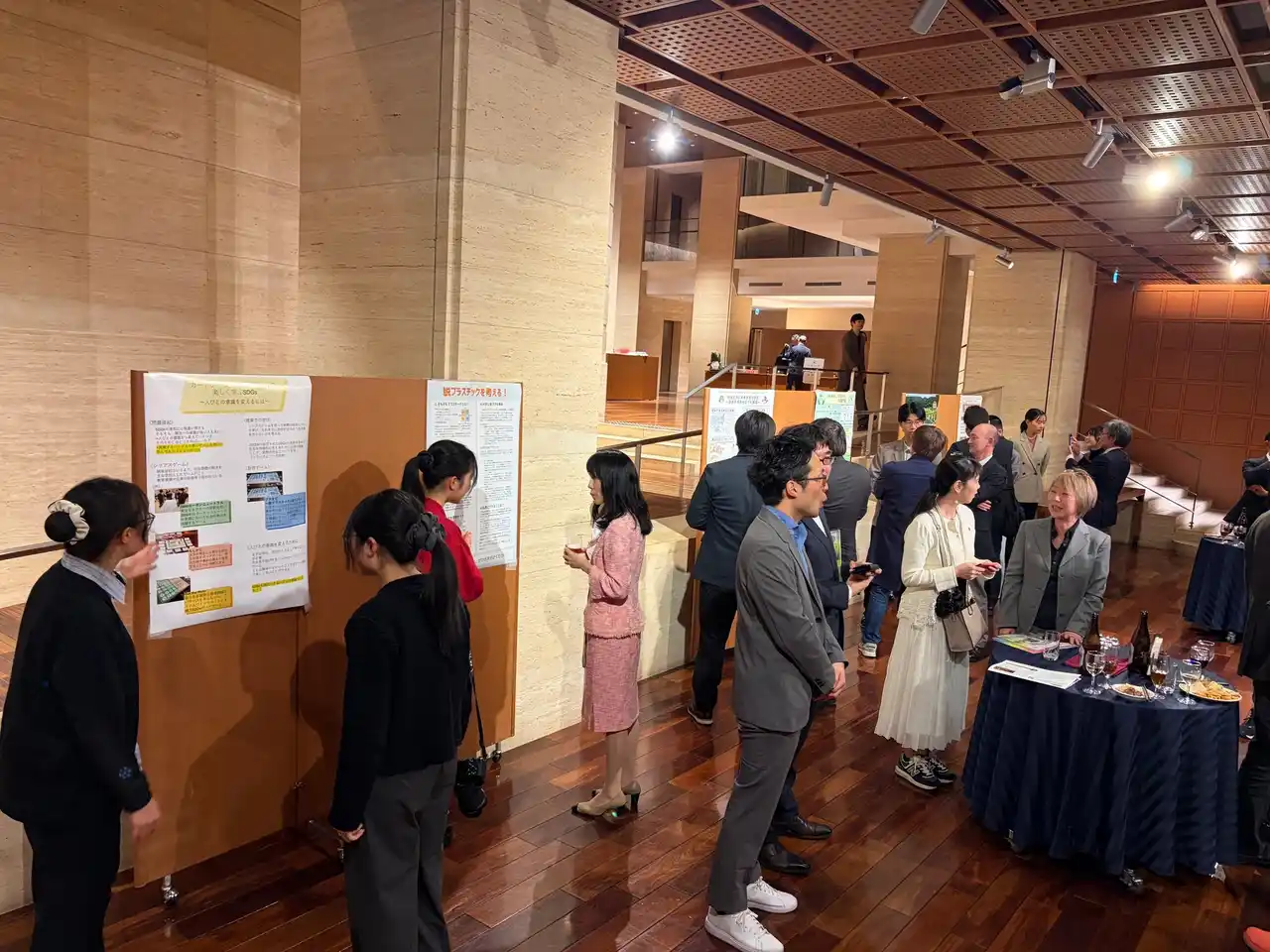 本シンポジウム終了後には交流会が開催されました。参加者による多様な取り組みの紹介に加え、学生による研究・実践活動の発表がポスター形式で行われ、分野や立場を越えた活発な意見交換と新たなつながりが生まれるなど、会場は終始和やかながらも熱気に満ちた盛会となりました。