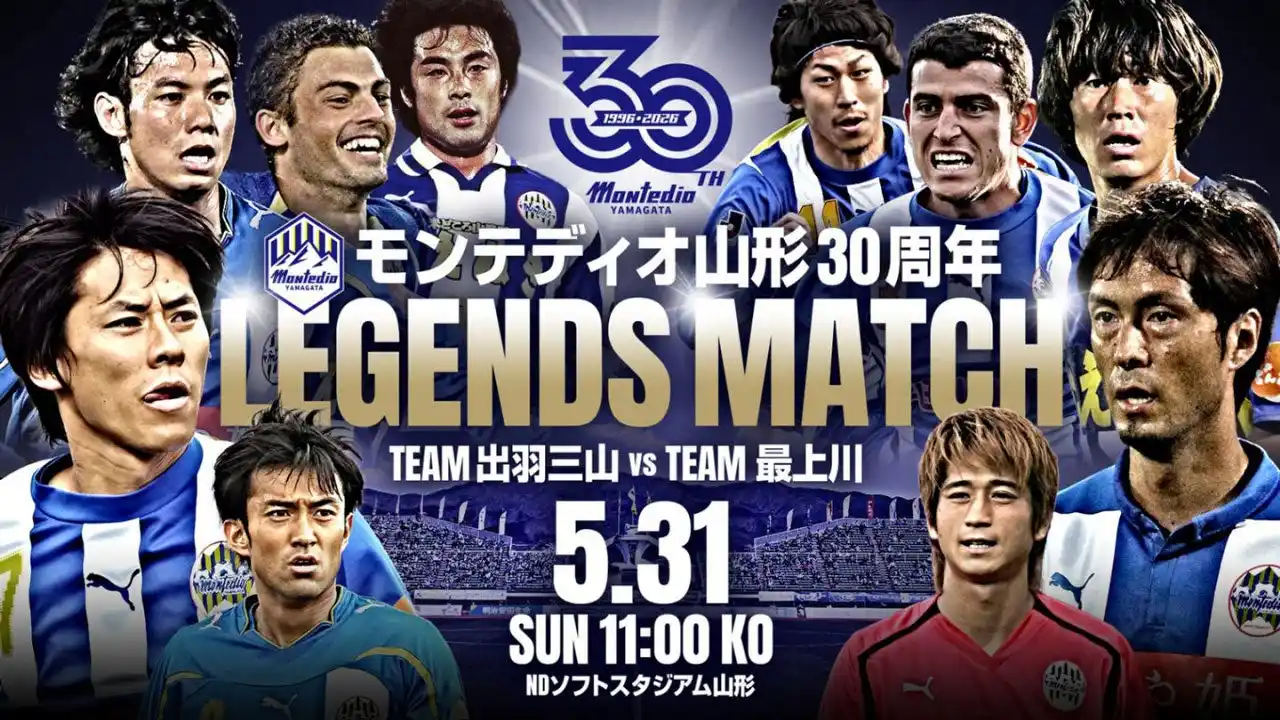 | モンテディオ山形では、2026年5月31日(日)にクラブ30周年を記念し、レジェンドマッチを開催いたします。また、この試合は明治安田J2・J3百年構想リーグ、プレーオフラウンド第1戦キックオフ前に開催いたします。 | |||