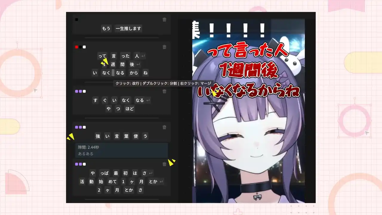 | 「ショートカット」が不要になる字幕編集パネル | |||||||||||||