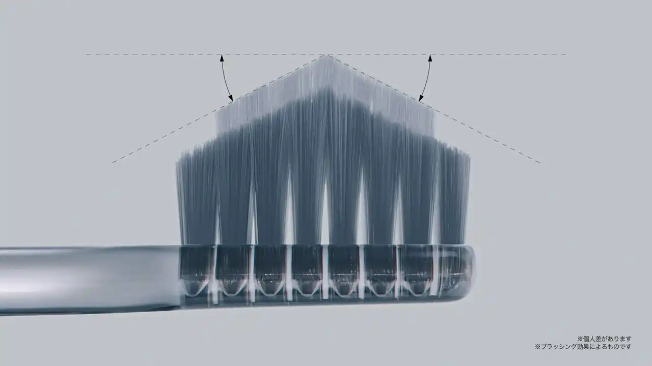 特許技術取得*のピラミッド形状のブラシが、「歯と歯のすき間」や「歯と歯ぐきの境目」の見えない汚れを落とします。隙間汚れをなぞるだけで効率良く落とせるため、どなたでも磨き残しが少なくなる画期的な歯ブラシです。本当に磨ける歯ブラシとして、多くの歯科医の方にも絶賛のお言葉を頂いており、歯科医院においてもお取り扱いを頂いています。 |