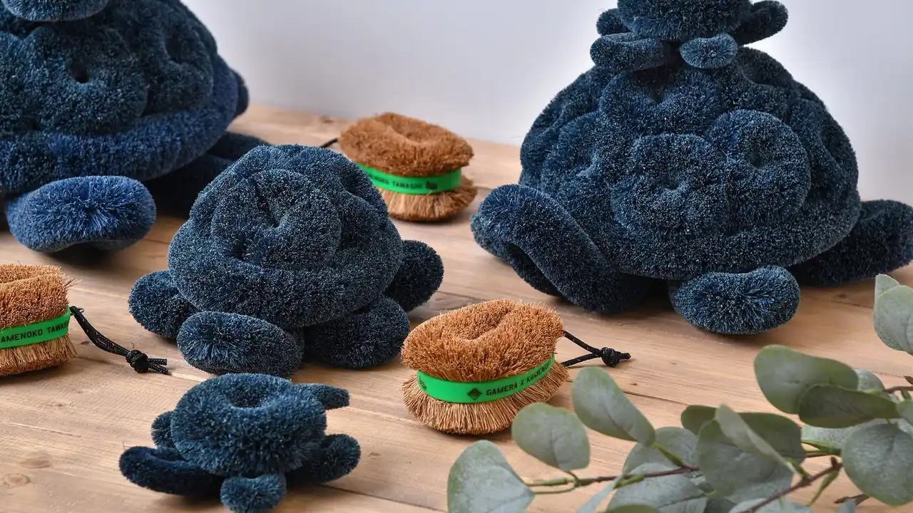 亀の子束子をベースに手作業で作られる人気のシリーズ「トータスペット」に、ガメラバージョンが登場。 |