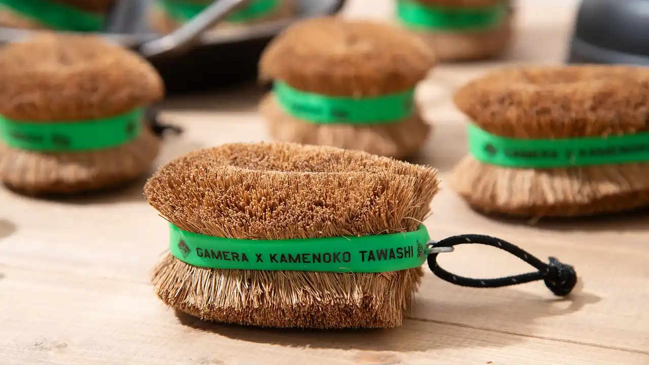 束子にシリコンバンドを巻いた、機能性あふれる「亀の子束子Obiガメラエディション」 |