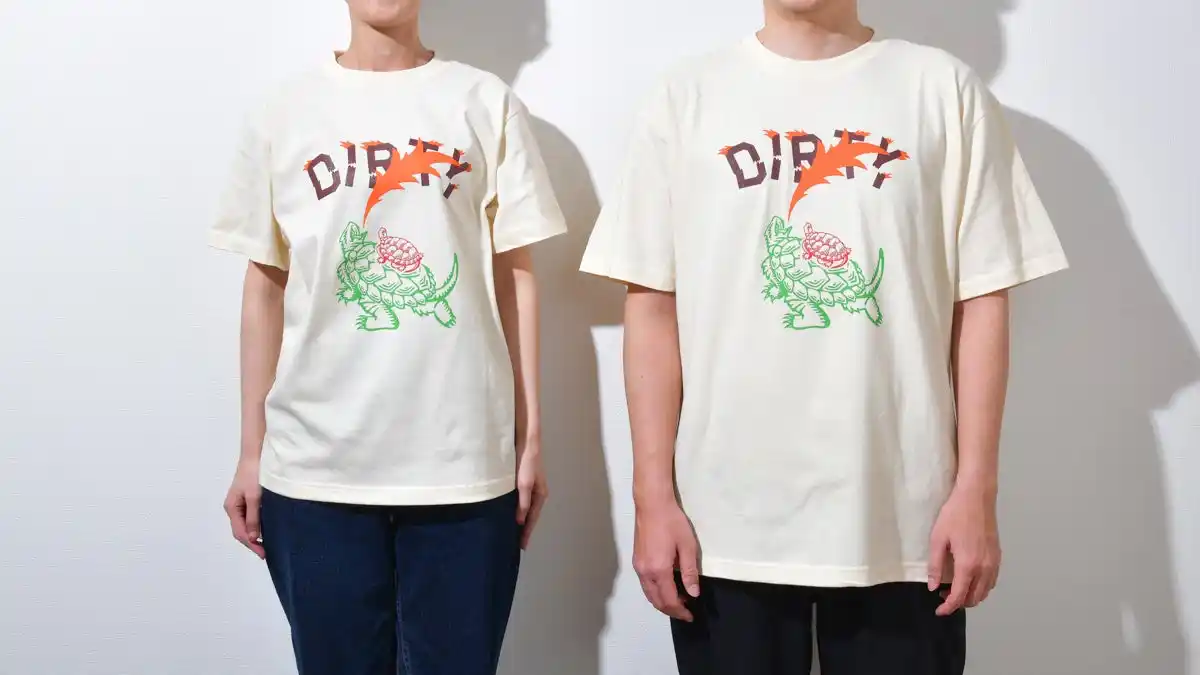 ガメラの上に亀の子束子のシンボルロゴである「亀」が乗り、共に「DIRTY」という文字を攻撃している力強いグラフィックが特徴です。 |