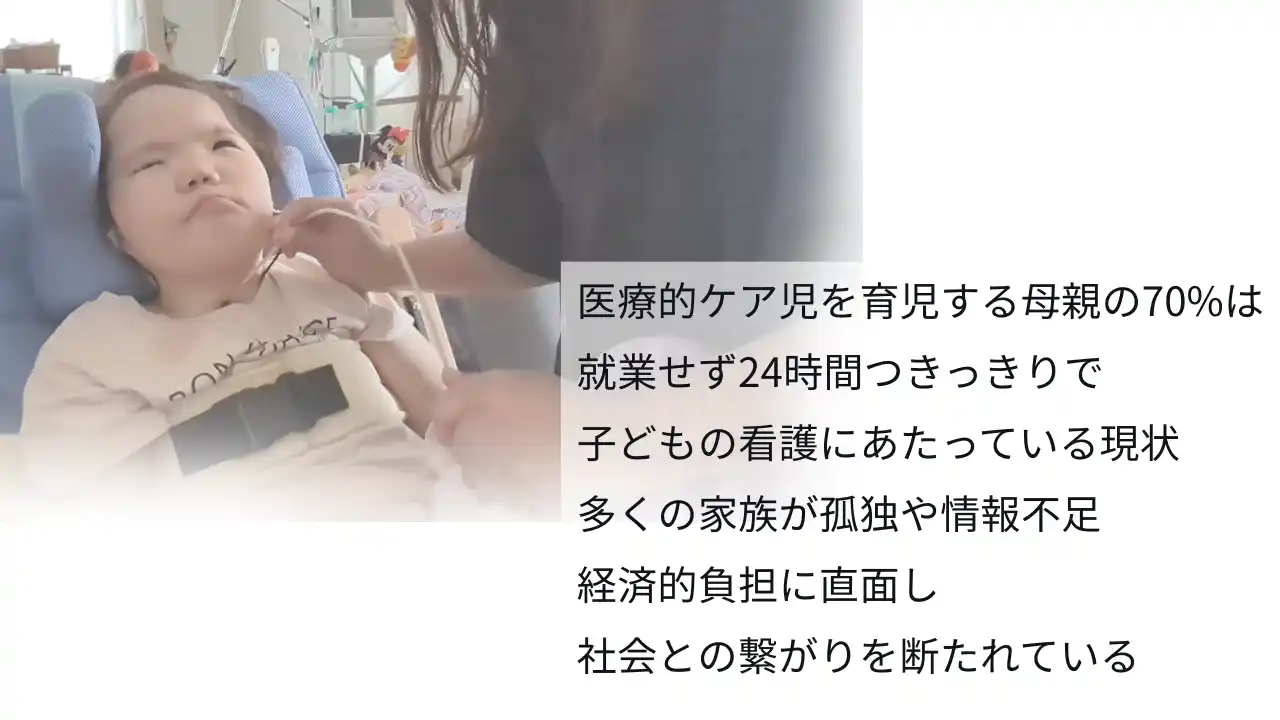 | 「医療的ケアを必要とする児童・家族・支援者が暮らしやすい社会を作る」をビジョンに掲げる2018年設立の医療的ケア児の家族を支えるNPO法人です。 | |||