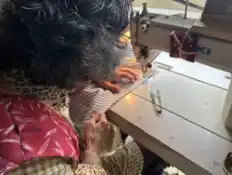 2. 熟練の職人技「スラッシュキルト」の実演:商業用ミシンを乗りこなす熟年の縫製技術を間近でご見学いただけます。 |