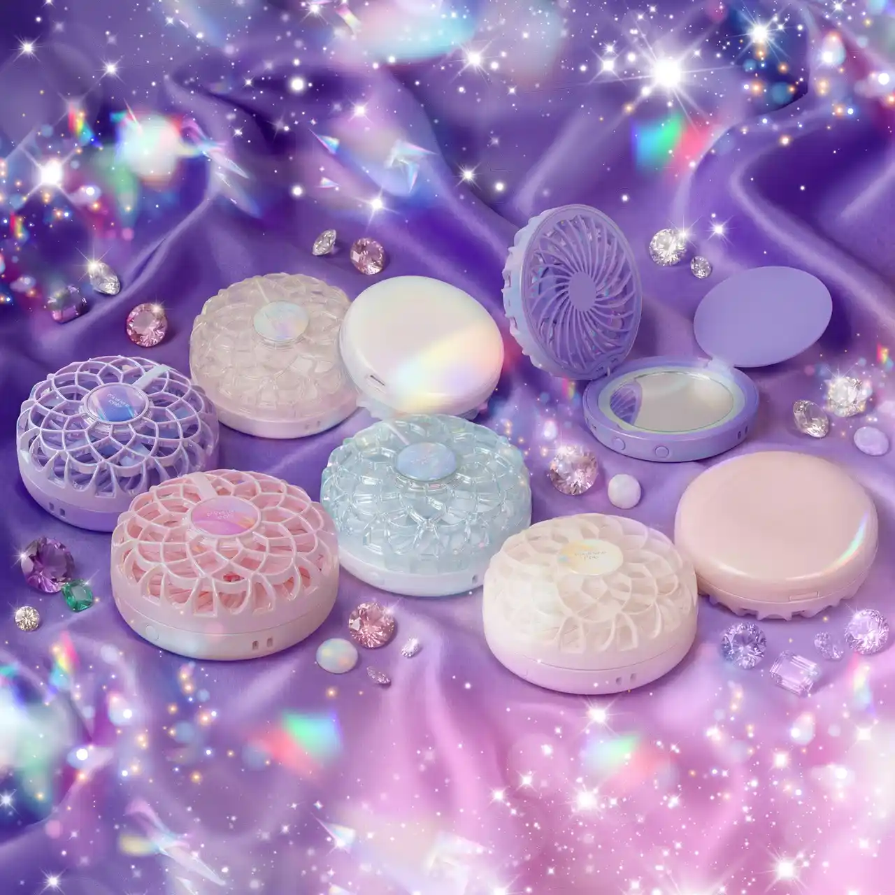 まるで“魔法のコンパクト”のような世界観をまとった「ミラハナファン」5色展開。 |