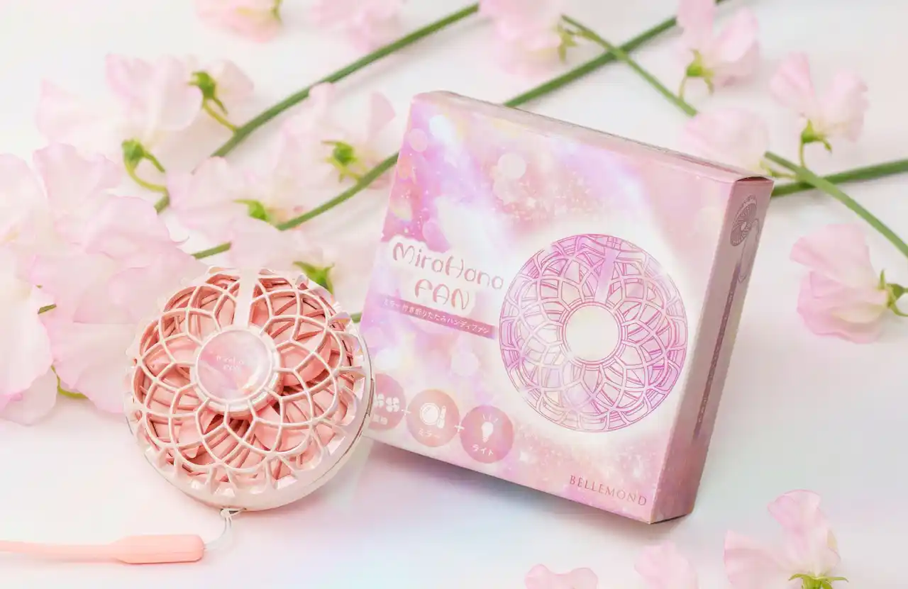 Fun Standard株式会社(株式会社RKB毎日ホールディスグループ、本社:福岡県大野城市、代表取締役:大屋良介、笹森広貴)が展開するブランド「BELLEMOND(ベルモンド)」は、女優ミラー付きハンディファン「MiraHanaFAN(ミラハナファン)」を発売しました。まるで“あの頃憧れた魔法のコンパクト”を思わせるような、思わず持ち歩きたくなるデザイン性が注目を集め、発売直後に楽天1位を獲得。気温が上がり始め、汗やメイク崩れが気になりやすくなるこれからの季節に向けて、涼しさと身だしなみチェックを1台でかなえる"実用アイテム"として展開しています。 |