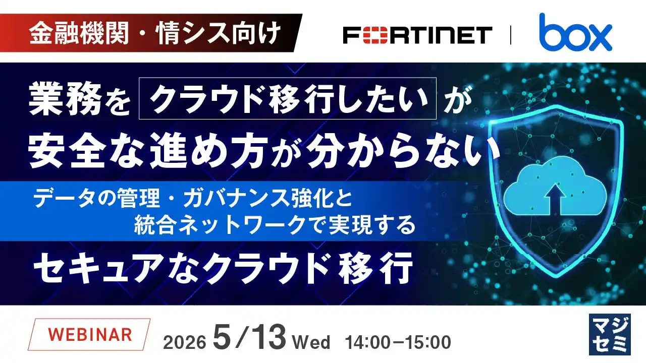 ■クラウド/SaaS活用が進み、データ利活用とセキュリティ統制が求められる 金融機関を取り巻くIT環境は、クラウド/SaaSの活用拡大により大きく変化しています。業務効率化や新サービス創出のためにデータ利活用を進めたい一方で、外部とのデータ共有やリモートアクセスが当たり前になり、従来の境界防御だけでは守りにくい領域が増えています。 さらに、顧客情報を扱う金融機関ではランサムウェアや情報漏えいリスクへの備えに加え、ガイドラインや監査対応を見据えた統制の強化も欠かせません。こうした状況下では、単に「クラウドに移す」だけでなく、データの管理・ガバナンスとネットワーク/セキュリティを一体で設計し、安心して業務を移行・拡張できる基盤づくりが求められています。 ■ツール・ネットワーク分断で可視化と統制が効かず、少人数で対策が進まない しかし現場では、クラウド移行に伴ってSaaSやツールが増え、コンテンツやアクセス権限が部門ごとに分散しやすくなります。どこに重要データが存在し、誰がどの経路でアクセスしているのかが見えにくいまま運用が積み上がると、セキュリティレベルやガバナンスにばらつきが生じ、インシデント時の影響範囲特定や監査対応にも時間がかかります。 個別最適のネットワークやセキュリティ対策が導入されている状況では、管理・運用の負荷が高く、限られた人員での対応は限界を迎えてしまうためです。その結果、必要性は理解していても「安全な進め方が分からない」「どこから手を付けるべきか決められない」状態に陥り、クラウドシフトが停滞してしまいます。 ■Boxでコンテンツを集約・統制し、Fortinetでネットワークとセキュリティを最適化 本セミナーでは、金融機関におけるクラウド移行を「データの管理・ガバナンス」と「ネットワーク/セキュリティ」の両面から捉え、分断を起こさずに段階的に整備していくための考え方と進め方を解説します。具体的には、コンテンツの集約と統制を進めるためにBoxをどのように位置付けるべきか、また、クラウド/SaaS利用で拡大する攻撃面に対し、Fortinet Security Fabricの考え方に基づいてネットワークとセキュリティを横断的に最適化していくポイントを整理します。データの利活用を止めずに統制を効かせ、少人数でも運用可能な形でセキュアなクラウド環境へ移行するための実践的なヒントをお持ち帰りいただけます。 ■主催・共催 フォーティネットジャパン合同会社 株式会社Box Japan ■協力 株式会社オープンソース活用研究所 マジセミ株式会社 |