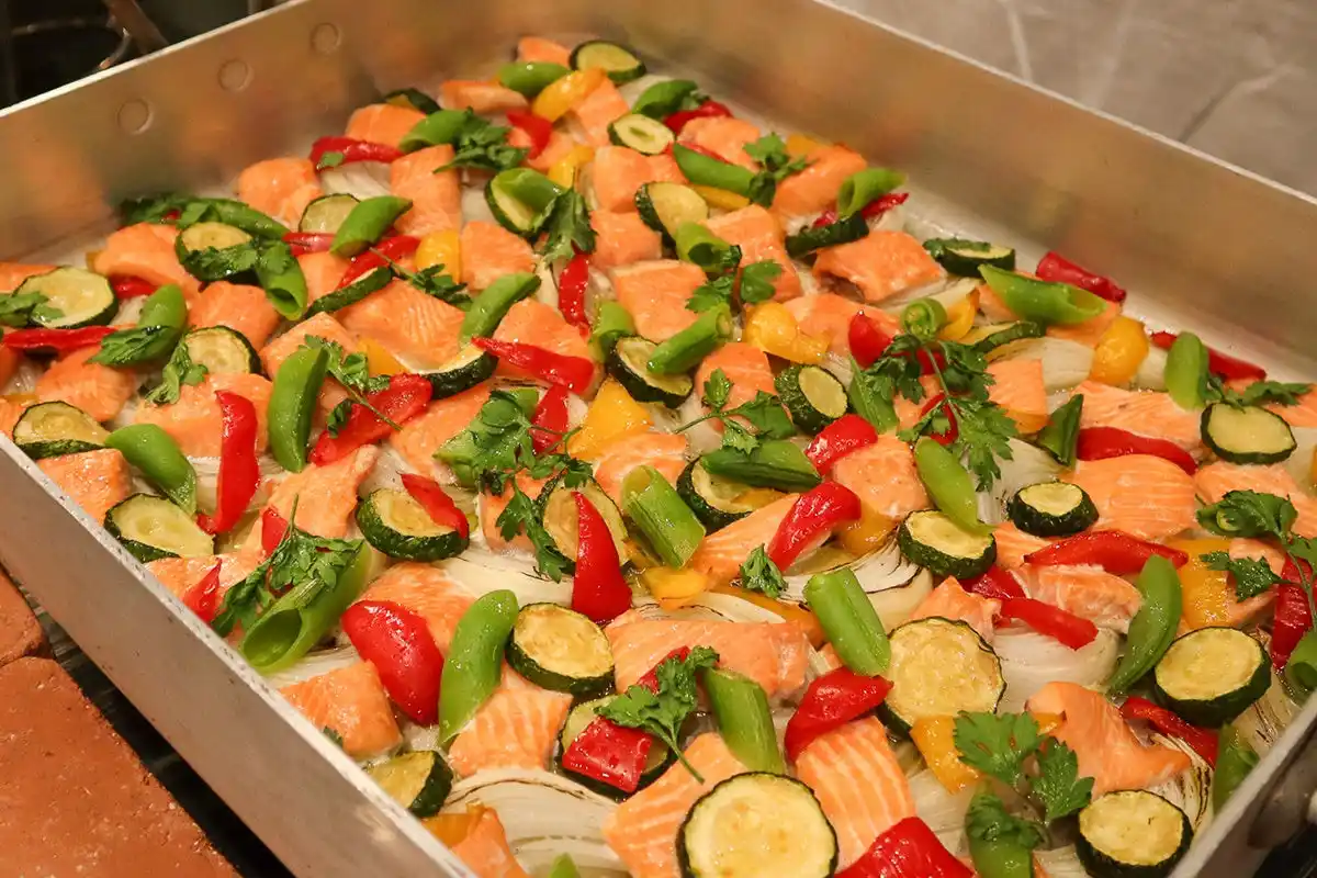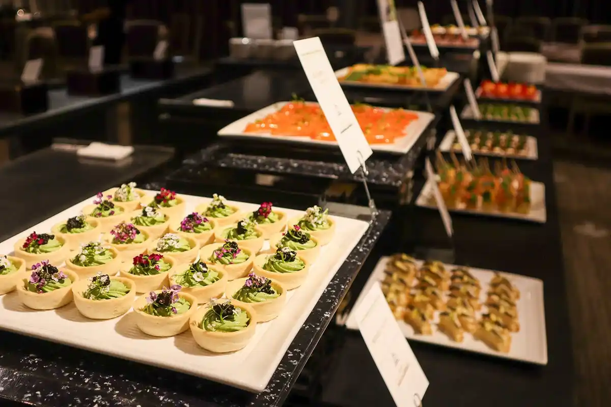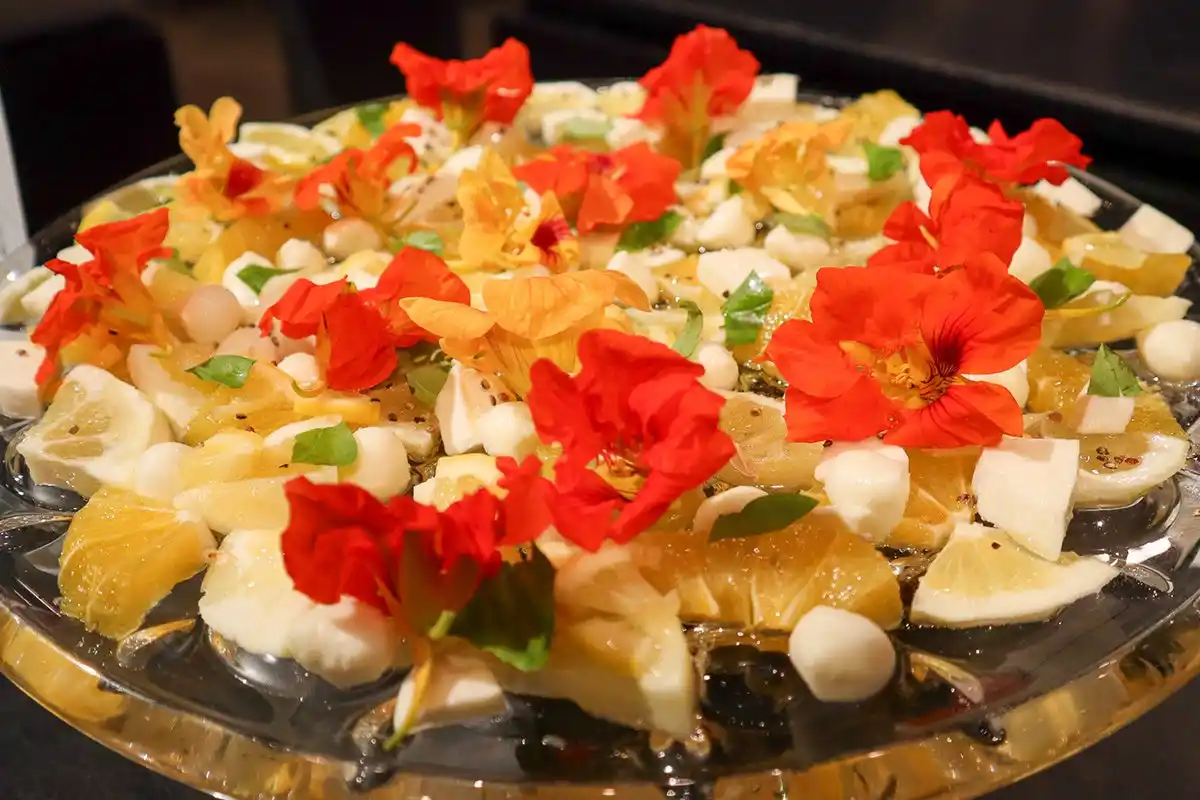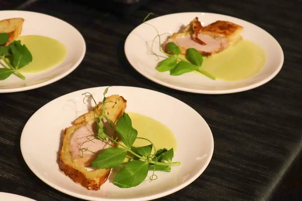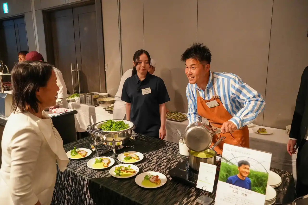 会場となった5階「THE GRACE」には、キャベツ、アスパラガス、トマトなど、東三河の肥沃な大地が育んだ旬の食材が並び、今里総料理長がその魅力を最大限に引き出した洋中折衷の料理へと昇華。約130名の来場者が、目と舌で東三河の豊かさを堪能しました。 |