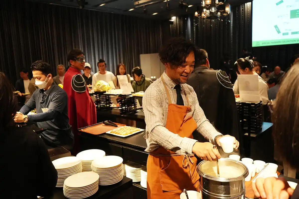 2019年のスタートから通算8回目を迎えた本イベント。今回は「春の美食祭」と題し、em CAMPUSの屋上農園で活動する「農民藝術創造倶楽部」から生産者10名と、当ホテルの総料理長 今里武による一夜限りのスペシャルコラボレーションブッフェを提供しました。 |