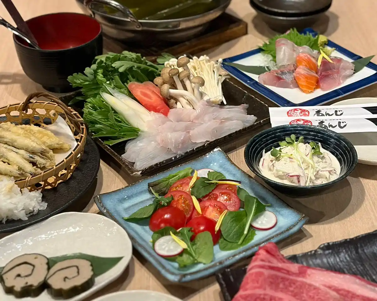 | 3. 【メインを選んで五島を凝縮】五島列島満喫コース 「クエちり鍋」と「五島牛しゃぶしゃぶ」から選べるメインに加え、五島美豚や九条ネギの西京焼きなど、島の味覚を全方位で堪能できるフルコースです。 | |||||||||||||||||||