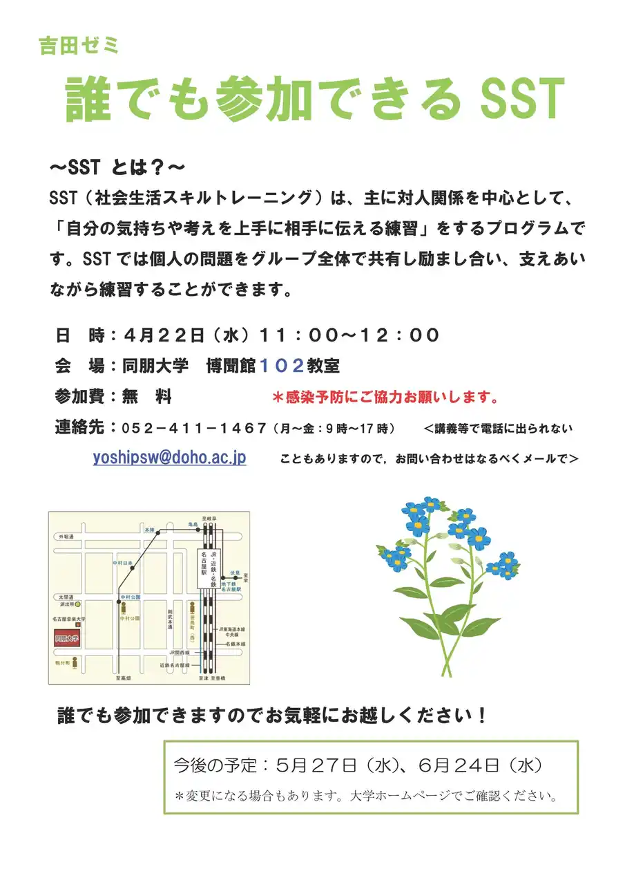 SSTとは、自分の思いを相手にわかりやすく伝え、より良い反応につながるコミュニケーションのコツを身につけるトレーニングです。 |