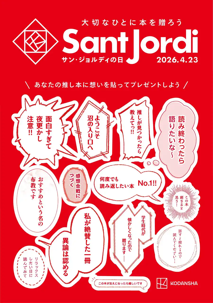 講談社は、2026 年 4 月 18 日(土)より、コミック編集部横断で「サン・ジョルディの日キャンペーン 2026」を開催いたします。 |