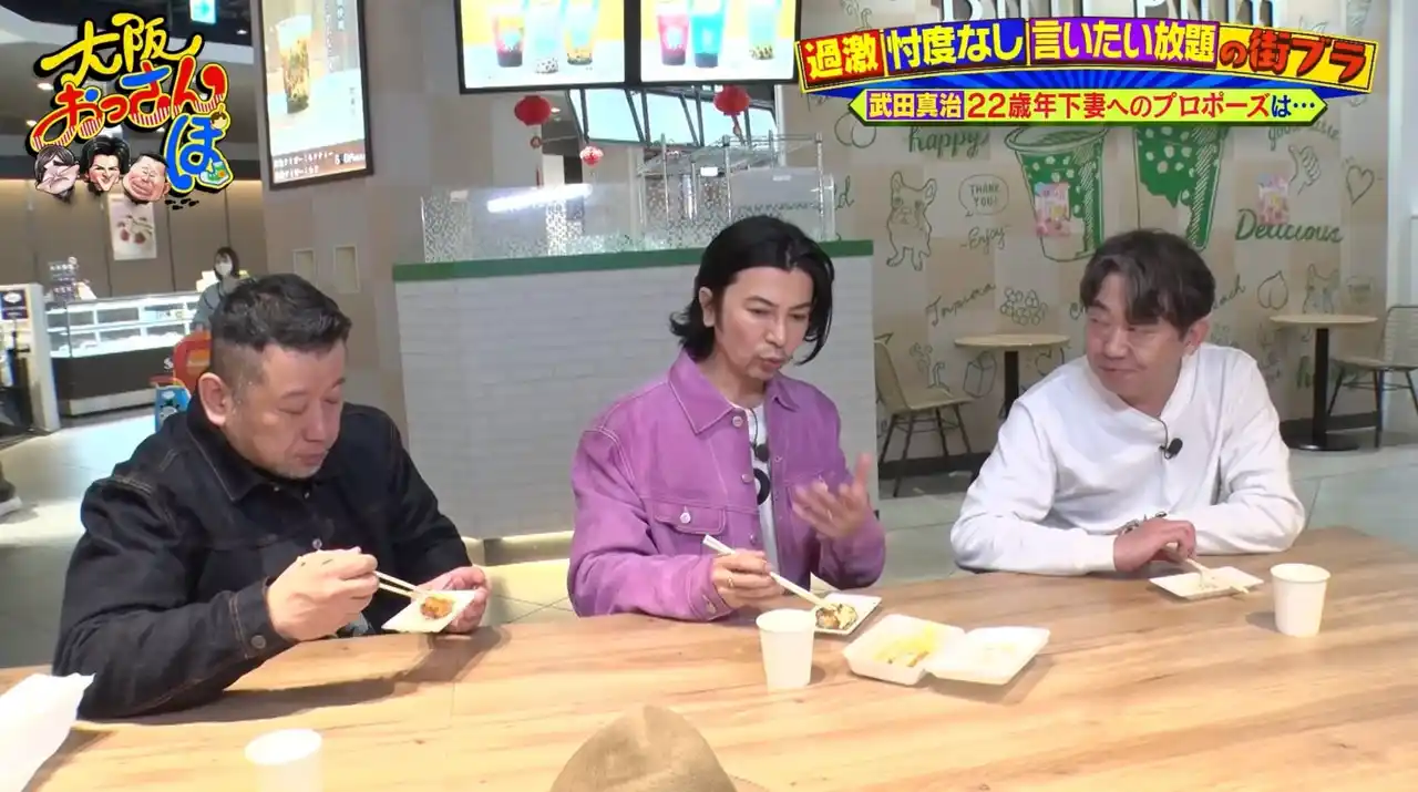 買い物を楽しんだ3人は、フードコート「ニューまったら横丁」でひと休み。たこ焼きを味わいながら、武田の結婚エピソードに迫る。もともと結婚願望は「少なかった」という武田が結婚を決意したきっかけとは? さらにプロポーズは「花火が上がるワイキキビーチ」という絶好のシチュエーション。しかし妻の意外な返事に、ケンコバは思わず「地に足がついた奥さん」と感心する。そんなケンコバも、妻と結婚した理由を語るのだが……? |